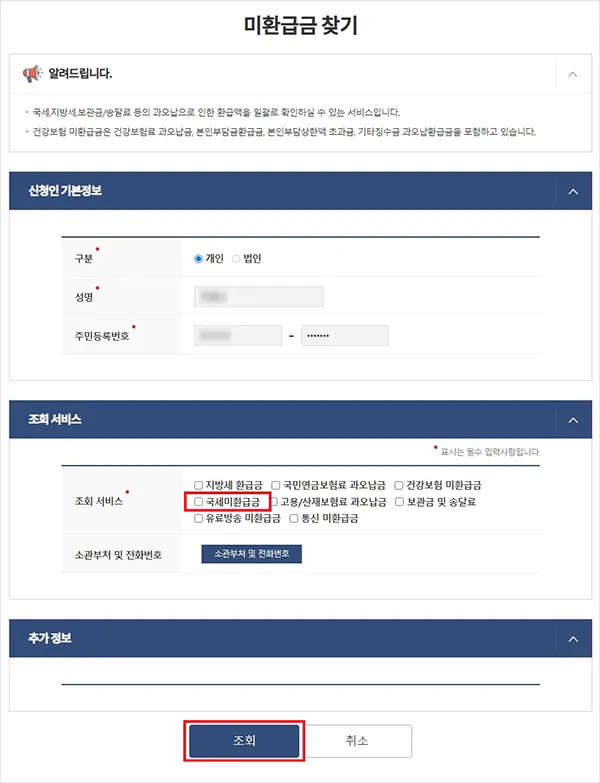 미수령 국세환급금 조회 및 신청 방법, 통지서 재발급