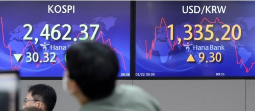 코스피는 25.31p(1.02%) 하락한 2,467.38을 기록했다. 코스닥은 7.27p(0.89%) 오른 806.90에 개장했고, 원/달러 환율은 9.6원 상승했다. 환율이 1,330원을 넘어선 것은 2009년 4월 29일(고가가 1,357.5원) 이후 처음이다.